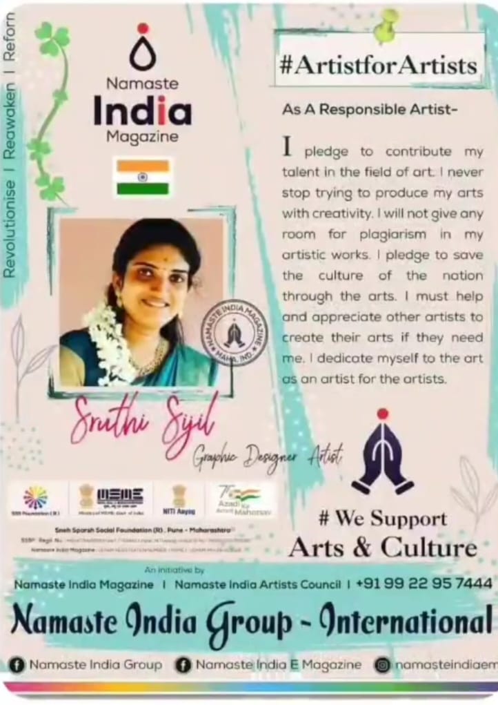 I’m SruthiSijil, a professional graphic designer with a deep passion for painting and drawing. Beyond design, I find true expression in creating mural paintings, traditional artworks, portrait drawings, and color pencil pieces. Each artwork is a masterpiece crafted with heart and imagination a reflection of my passion for art and creativity.